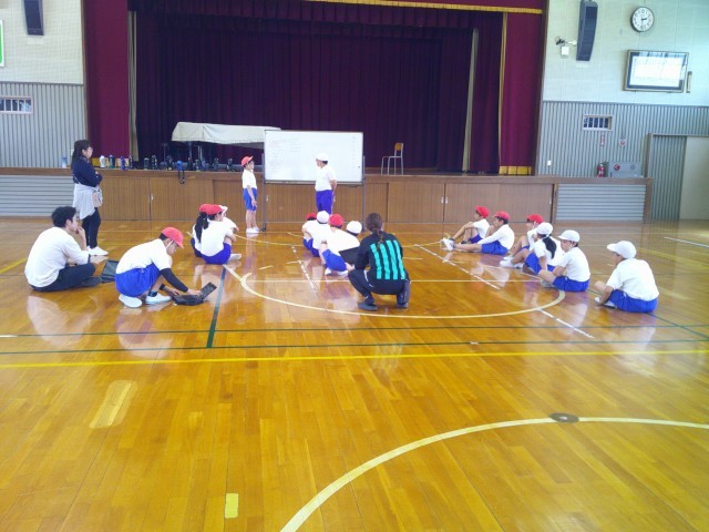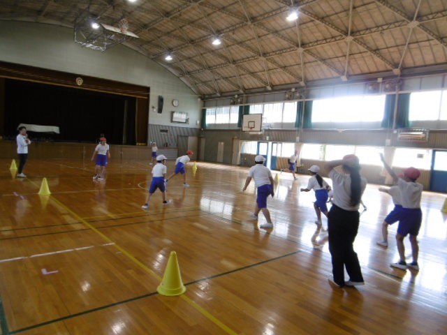 運動クラブはドッジボールを行いました。とても白熱したゲームになりました。