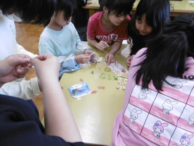 文化クラブは、ペットボトルキャップを材料にしてキーホルダー作りをしました。個性的でかわいい作品に仕上がりました。