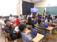 浄化センターでは、家や工場、雨の水がどのようにきれいになっていくかを学びました。微生物が水の浄化に役立っていることを知り、施設の方にたくさん質問をする様子が見られました。