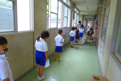 今日は、身体測定がありました。授業を行いながら、廊下に数人ずつ出て測定を行いました。身長・体重を測りました。