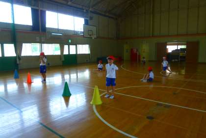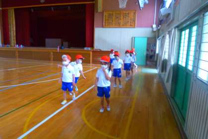 今日は、体育館探検をしました。体育館の中にあるものをいろいろ見て回りました。体育館に入るのは4月の入学式以来です。