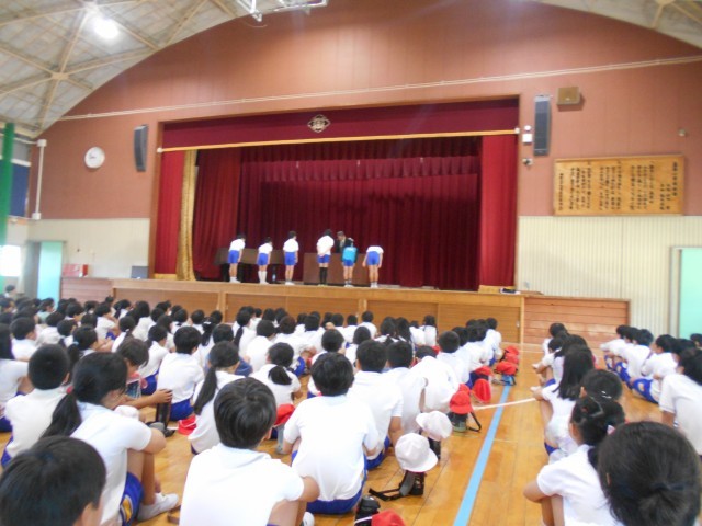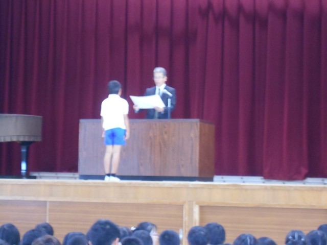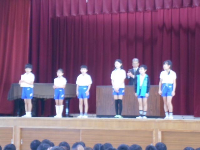 今朝の朝会では、後期学級委員の認証と、応募献立の表彰がありました。4年生の活躍が随所で見られました。