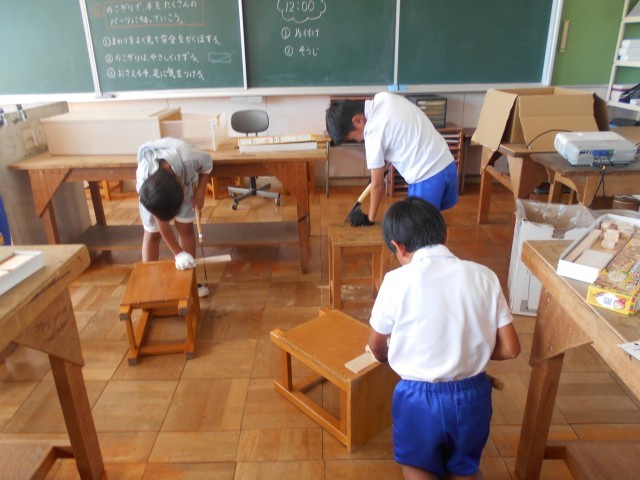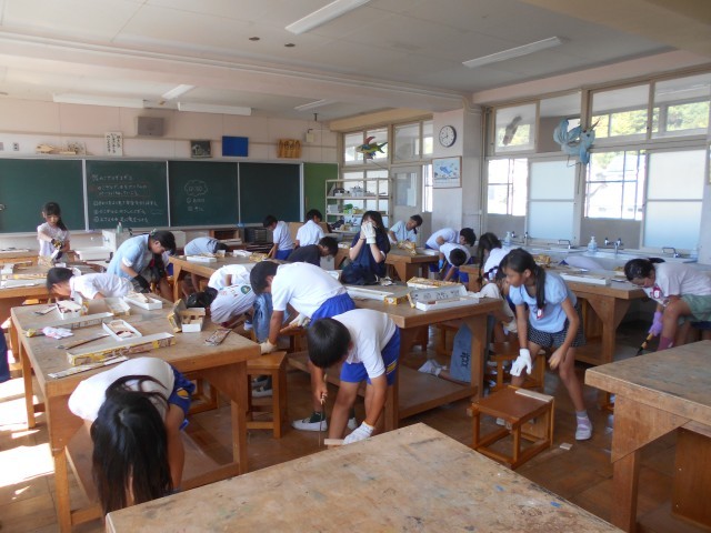 今日ものこぎりを使って木工を行いました。足で木をおさえたり、手で固定したり、自分たちの切りやすい態勢を工夫して切っていました。