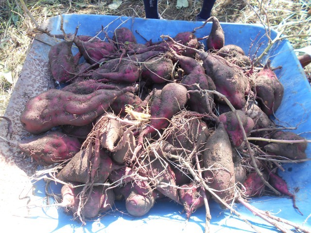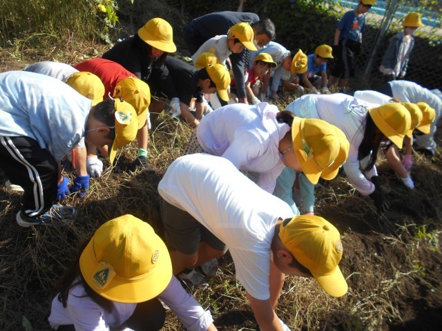 8日(水)に、2年生の畑で育てていたサツマイモ堀りをしました。芋が切れないように、手でそっと土をかきわけて、一生懸命に掘っていました。思っていたよりもたくさんのお芋が掘れて、子どもたちも嬉しそうにしていました。(写真は一クラスで掘った分です)