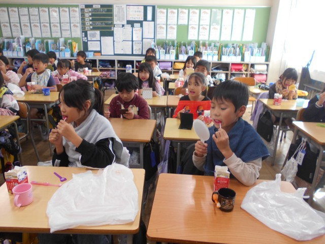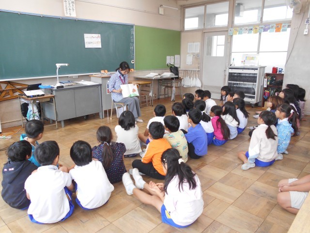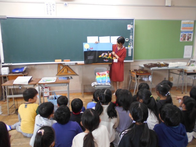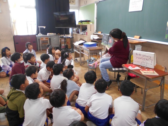 今週は、よむよむさんが2回、子どもたちのために本を読んでくださいました。子どもたちが興味をもてるような本を選んでくださり、大変楽しく聞くことができました。また、歯の指導もあり、歯磨きの仕方を丁寧に教えていただきました。ピンクに染まった自分の歯を見て驚いていましたが、歯ブラシを小刻みに動かしてきれいな歯になりました。