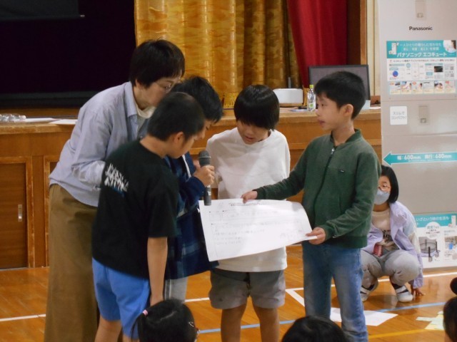 今日は、パナソニック空質空調社の方々をお招きして出前講座「キッズエアラボ」を体験しました。エアコンや給湯器の秘密を探ることもできました。空気の性質を確かめるミニ実験や、きれいな空気のためにできる行動やこんな製品があったらおもしろいなというアイディアをグループで考えて発表しました。子ども達の柔軟な発想で様々なアイディアが出てきて、スタッフのみなさんも感心なさっていました。今日みんなで一緒に考えたことが未来につながるといいな…と思いました。