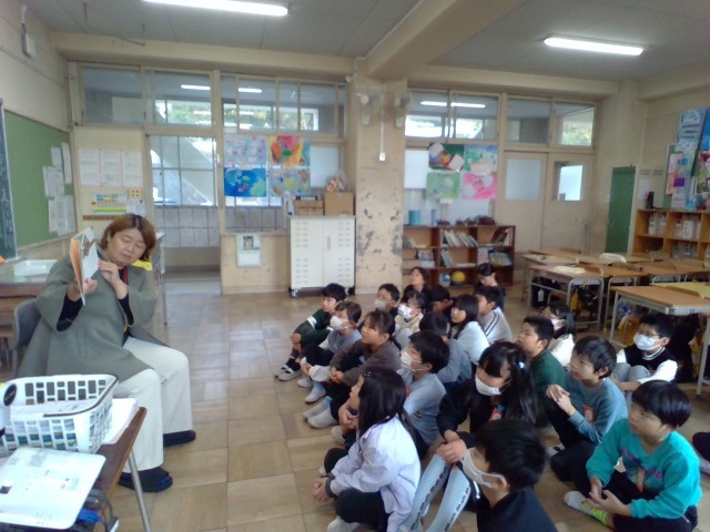 11月11日(火)にyomyomさんによる読み聞かせがありました。今回はどんなテーマかを考えながらお話を聞きました。どのクラスも楽しく本に親しむことができました。
