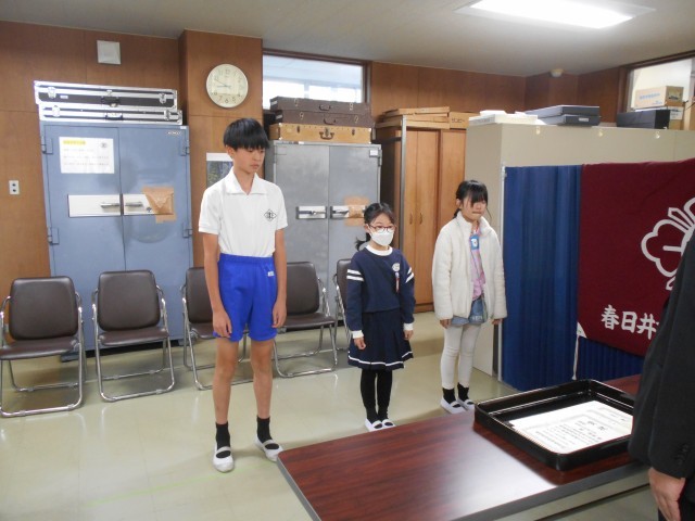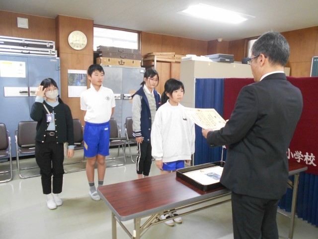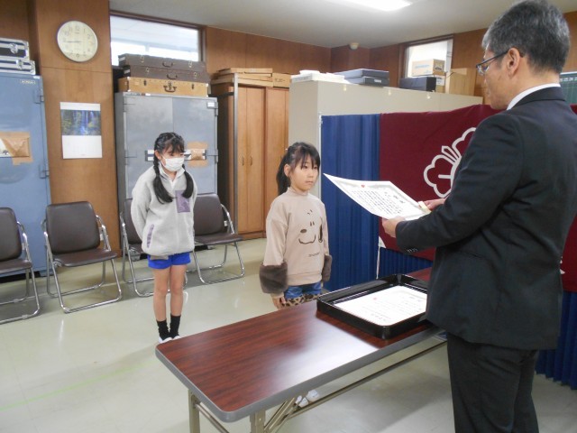 今朝の集会は、表彰伝達と、人権習慣について校長先生からのお話がありました。「おはようございます」「いただきます」「ごちそうさまでした」など、挨拶が相手を敬う大切な言葉であることや、トイレのスリッパを整頓するちょっとした気遣いの大切さが、次の人を思う大切な行動であることを語っていただきました。