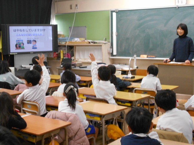 測定後は、保健の先生から、生活リズムについてのお話がありました。