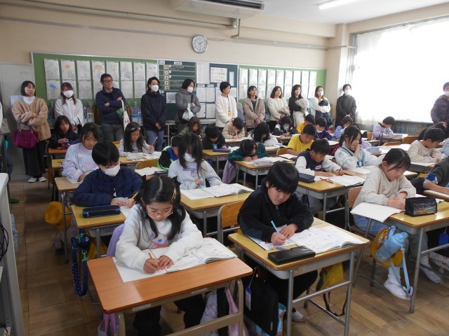 本日5時間目に授業参観を行いました。授業の様子や、本校が取り組んでいるTタイムの様子も見ていただきました。寒い中、大勢の保護者の皆様にお越しいただき、有難うございました。