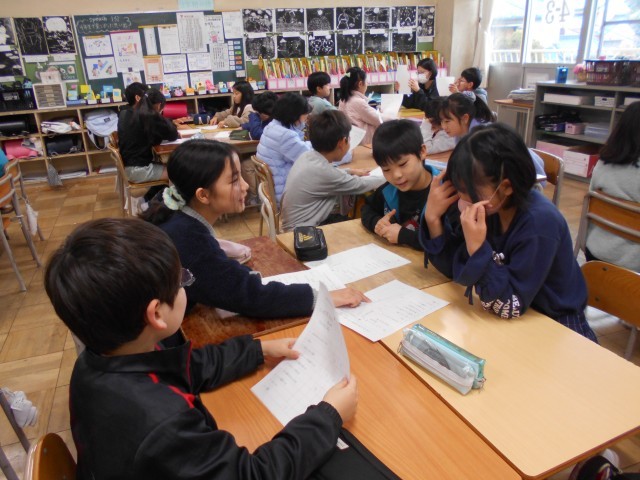 今日は、今年度最後のTタイムでした。最後のTタイムは「いいとこみつけ」をしました。お互いの「いいな」と思うところを見つけられる素敵な活動です。「これ、一緒だね!」「なんで、これに〇してくれたの?」と活動の後のフリートークでは、お互いのワークシートを見合って交流を深めることができました。