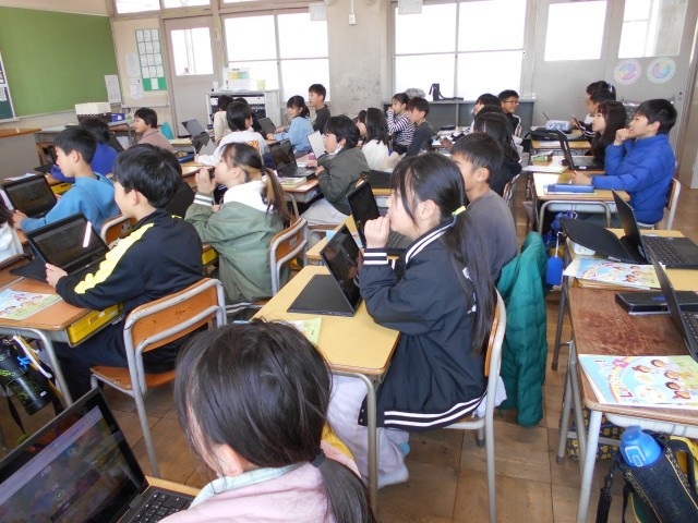 本日、3年生最後の外国語の学習がありました。ALTのクリス先生が、1年間のまとめクイズを子どもたちが楽しめるように作ってくれました。みんな頑張って問題を解くことができました。