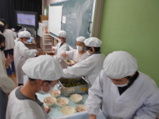 給食当番の動きも、さすが6年生!当番以外の人も自主的に動いて食器かごを運んでスムーズに配膳ができています。