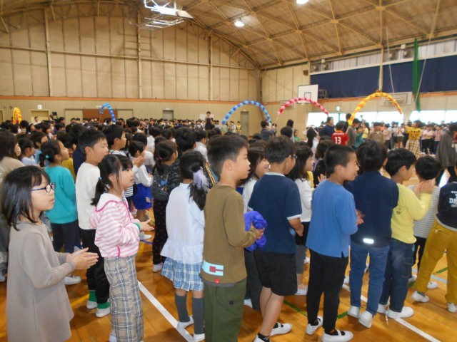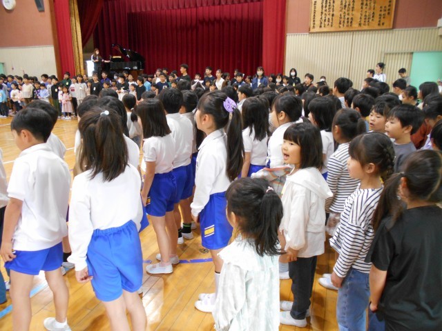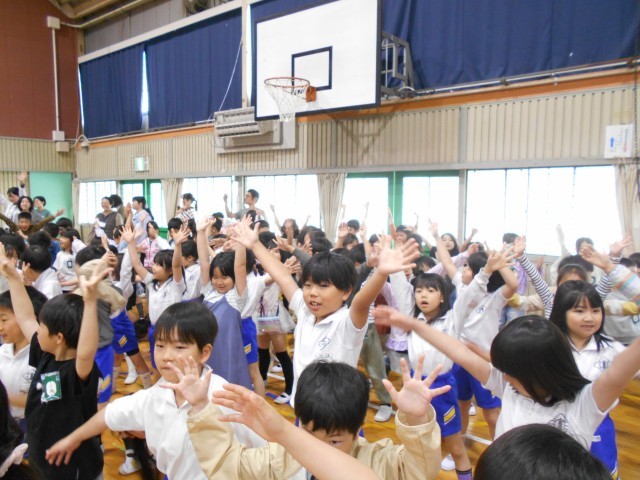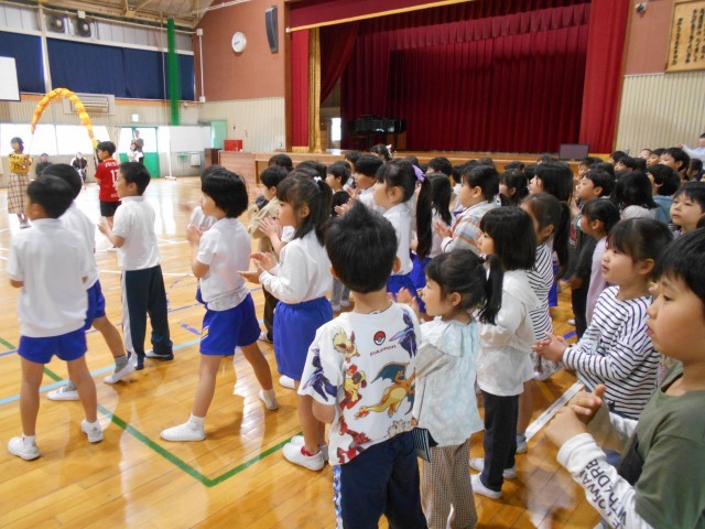 『1年生を迎える会』に参加しました。子どもたちは、昨年は迎えられる方だったのが迎える側になり、一つ大きくなったことを実感していました。それぞれの学年の紹介も楽しく見ることができました。