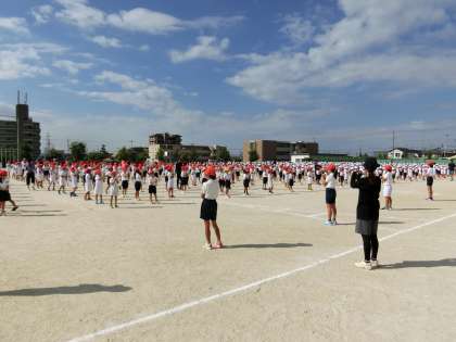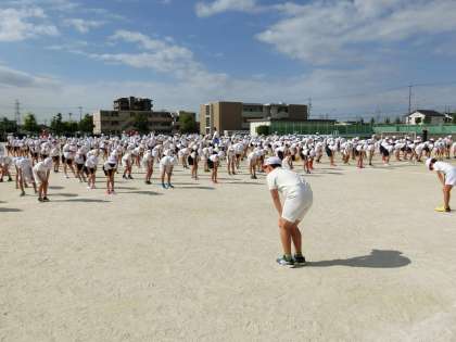 三連休明けの本日も業前に運動会練習がありました。今日は、閉会式で行う整理体操の練習をしました。まだまだ暑い日が続いていますが、子どもたちはがんばって練習しています。