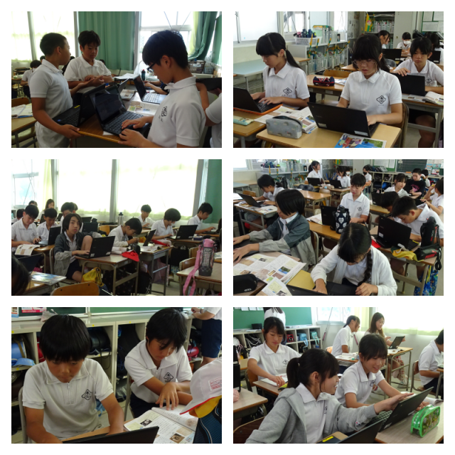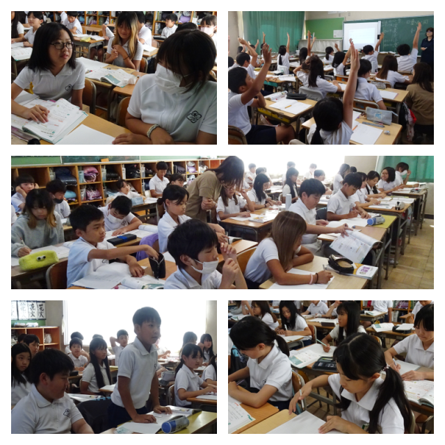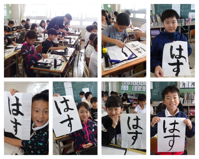 4年生は書の時間、5年生は算数、6年生は社会の様子です。