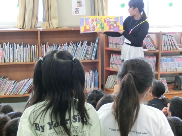 本日は図書室にて読み聞かせがありました。楽しみにしている子が増えてきたようです。たくさんの笑顔が図書室に集まりました。