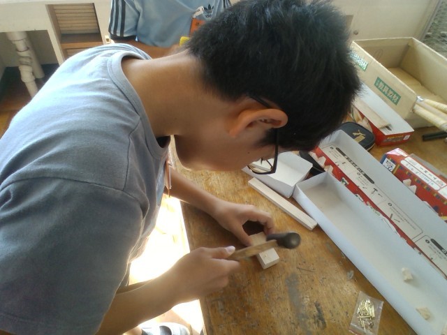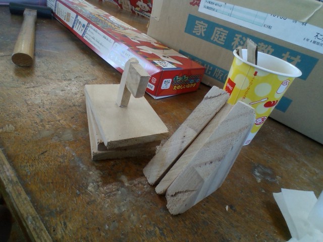 図工の時間に、のこぎりや金づちを使って工作をしました。木と木をどうやって組み合わせるのかを考え、楽しく取り組みました。