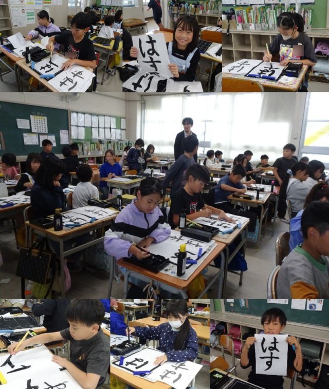 習字の課題は「はす」。筆運びに気をつけて書きました。