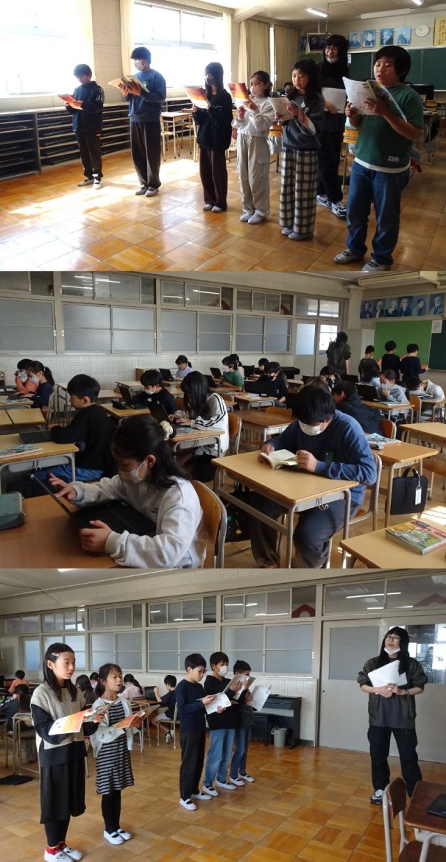 算数と音楽の様子です。5年2組、久しぶりの登校でした。