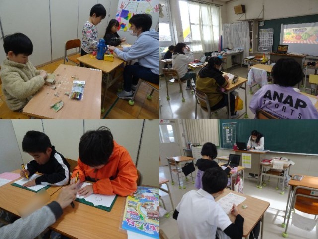 5年生は外国語、なかよしさんは学年ごとに学習を進めていました。
