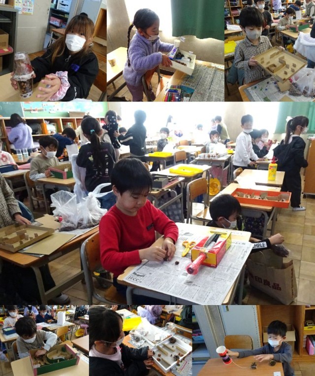 生活の時間は、「秋」を使ったおもちゃ作りを楽しみました。