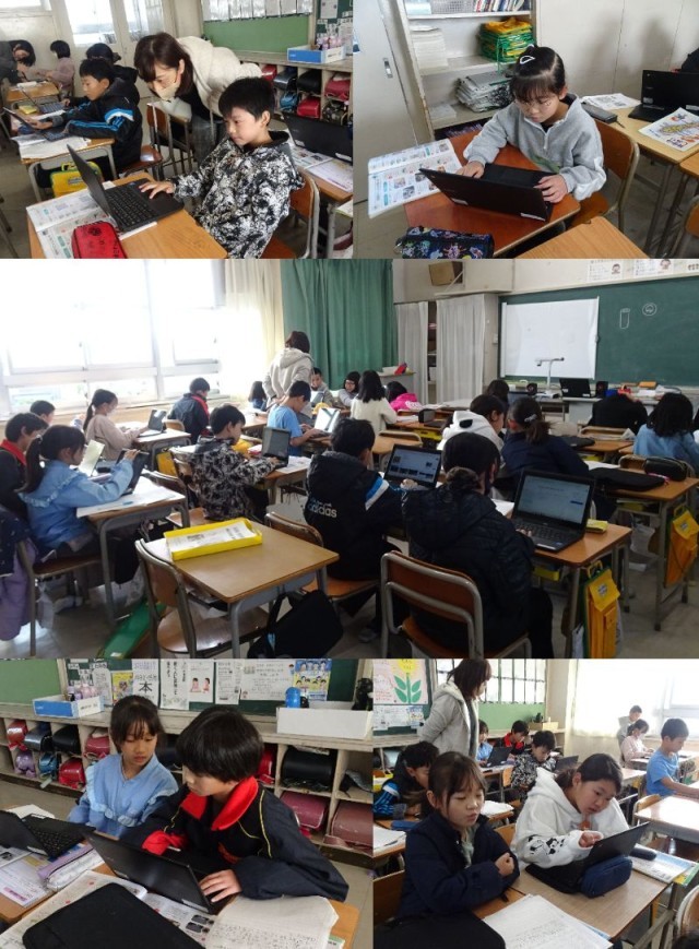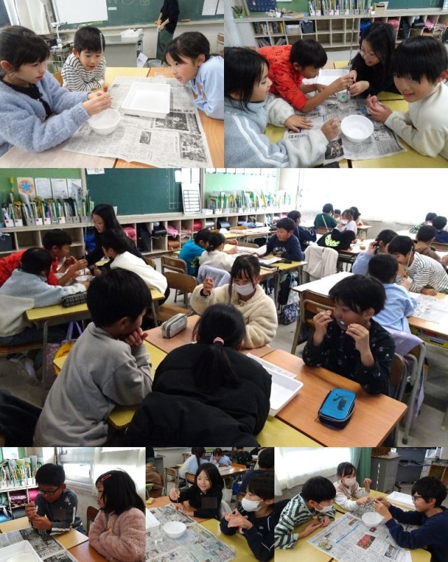 3年生は道徳、4年生は昨日の校外学習のまとめと理科の様子です。