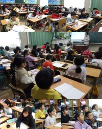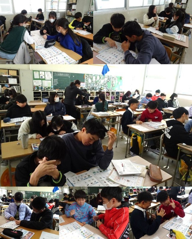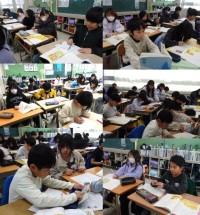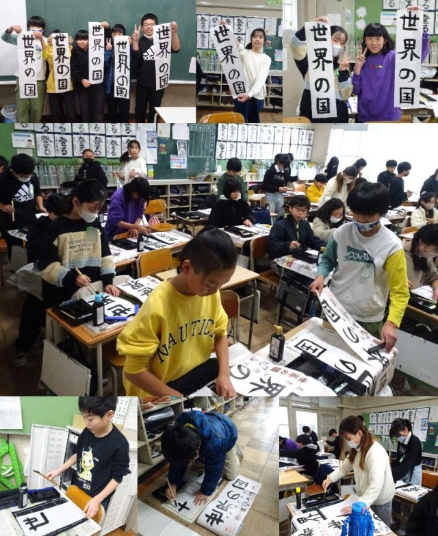5年生は書の時間、6年生は外国語と理科の様子です。