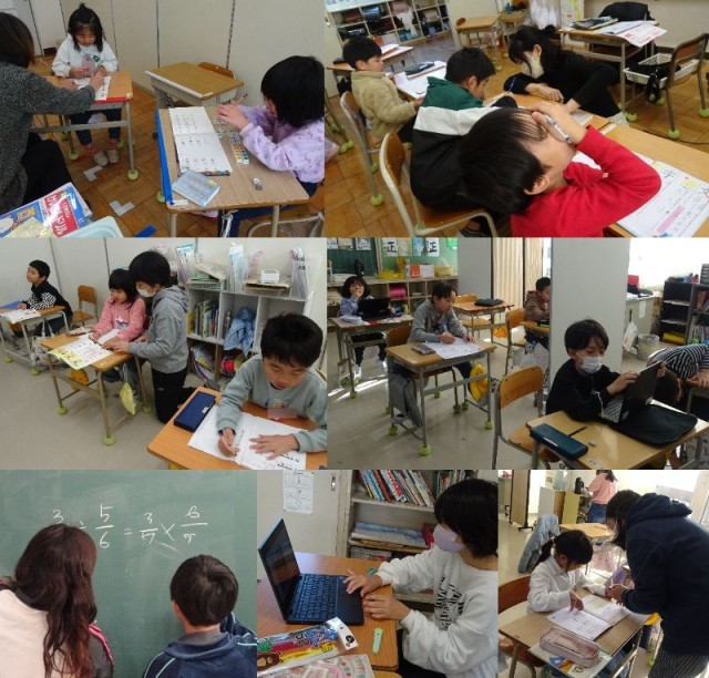 1年生は算数、2年生は図工、なかよしさんは国語や算数を頑張っていました。