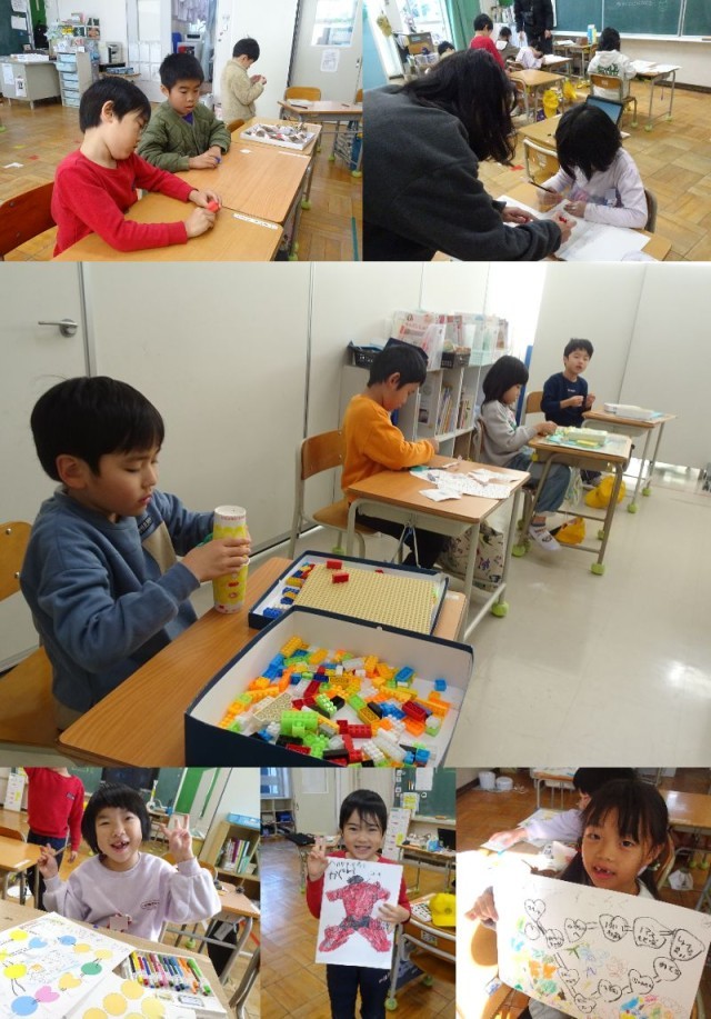 5年生は音楽、なかよしさんは図工の時間です。