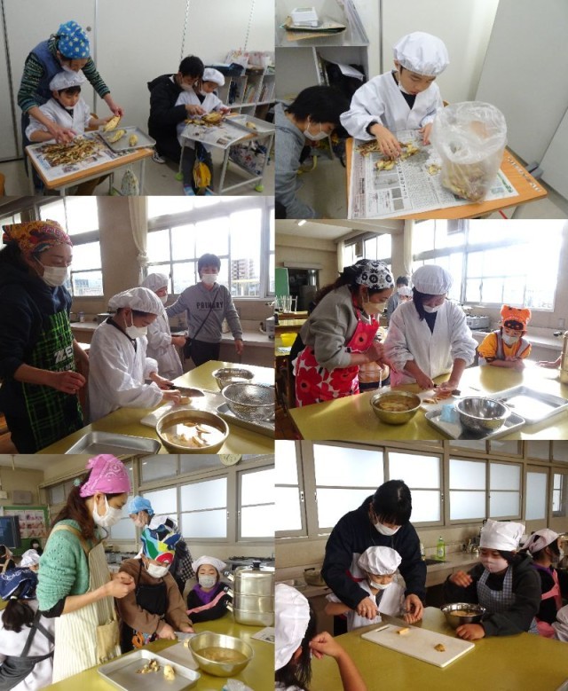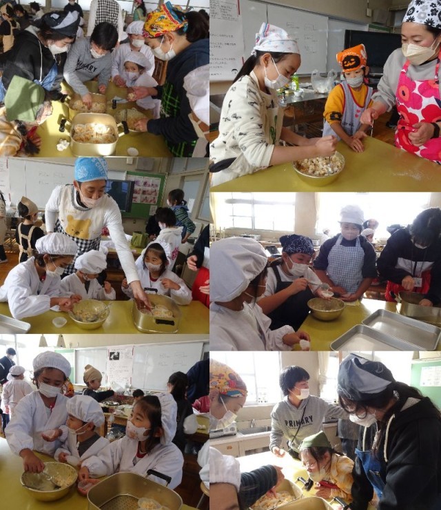 畑で育てたサツマイモを使って、みんなで鬼まんじゅうを作りました。