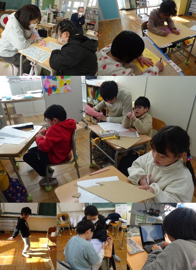 1年生と2年生は国語、なかよしさんは個別学習の様子です。