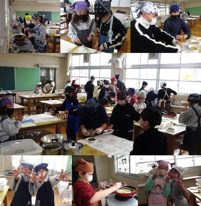 図工と家庭科の様子です。自分たちで育てた大根を調理しました。