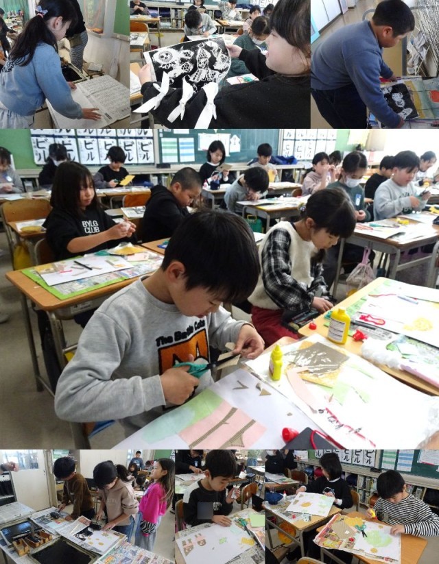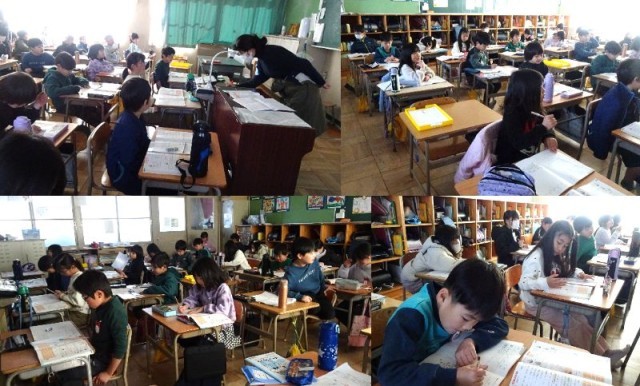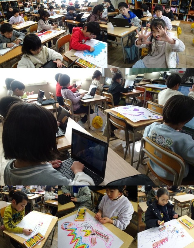 1年生は図工、2年生は算数、3年生は図工の様子です。