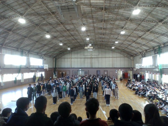 4年生は卒業生を送る会で、ショートコント「思い出の給食」と合唱「広い世界へ」の出し物をしました。練習の成果を発揮して、笑いあり感動ありの発表ができました。