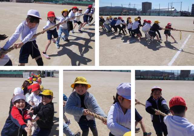 3月16日に、学年レクリエーションとして「つなひき大会」を行いました。学年のみんなでつくる最後の思い出です。