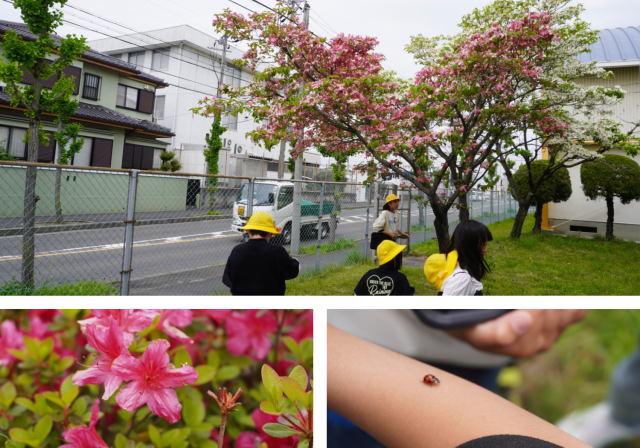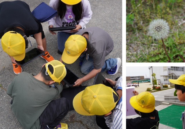 本日、理科の「あたたかくなると」の学習で、校庭に春を見つけに行きました。