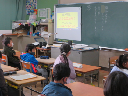 2月17日(金)6時限、3〜5年生の各教室において令和5年度前期企画委員選挙を...