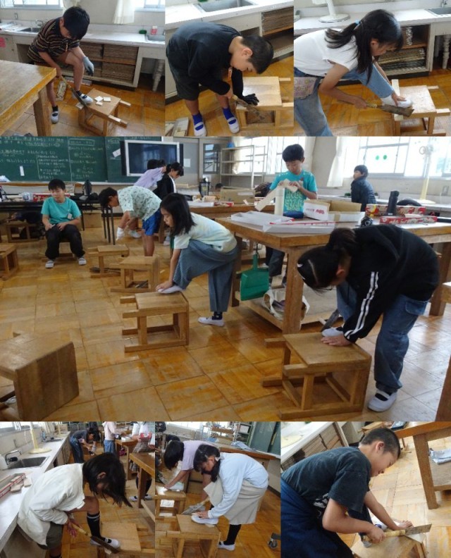 図工です。うまく切れたかな。理科です。実験の道具に名前を書きました。習字の課題は...