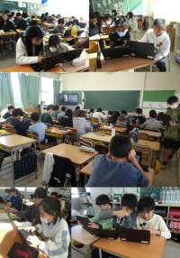 3年生は音楽です。なかよしさんは、金曜日なので上靴や白衣を洗っていました。