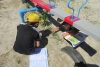 理科で、昨日まで降っていた雨の流れ方を調べました!