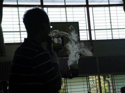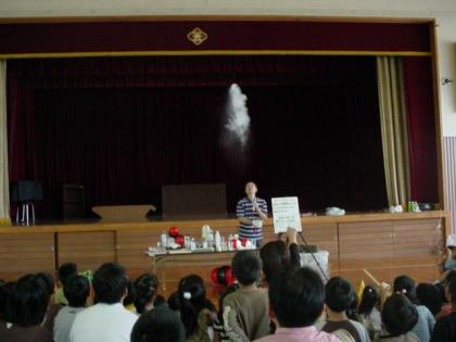 大道仮説実験の博士というべき宮地先生をお招きして、「モクモク」というドライアイスをつかった科学実験をしていただきました。