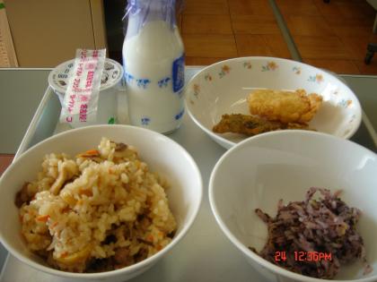 10月24日の給食の「きのこごはん」に、「はなびらたけ」が入っていました。