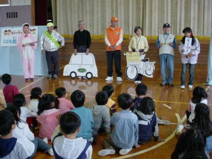 春日井市の安心安全まちづくりの方々がたくさん来校し、1年生に分かりやすい劇を見せてくださりながら、防犯のノウハウを教えてくださいました。