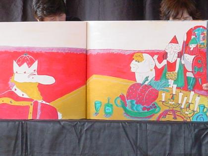 毎年、朗読グループ「コスモス」が来てくださり、楽しい朗読や紙芝居を見せてくださいます。