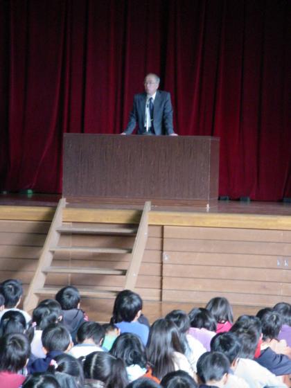 「冬休みは、家族や友だち、親戚の方々と楽しく過ごしましょう。また、大そうじなど家族の一員としてしっかり働きましょうね。3学期には元気な顔を見られることを楽しみにしています。」とお話がありました。