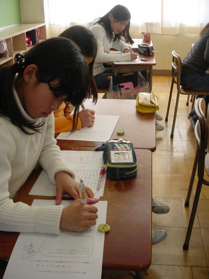 「命」の学習 公開日 2008/02/07 更新日 2008/02/07 学校の様子 限りある命を大切にする・・・学校や世の中で勉強するすべてのことの行き着く答えは、これだと思います。 自分の命を大切にする、人の命を大切にすることは、もちろん家庭でも自然に学ぶことですが、学校でも大切な授業のひとつと考えています。 養護教諭を中心に、子どもたち一人一人が深く考えることができる時間をとりながら指導をしています。 この写真は、5年生の子どもたちが、ひとつの詩をもとに考えている風景です。