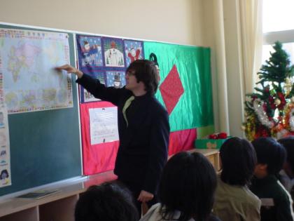 2月からいらっしゃった新しいALTの先生は、オーストラリア出身のオーガスト先生です。先生は日本の武道に熱心で、剣道や柔道、空手はもちろんのこと杖道、なぎなたまでやるそうです。