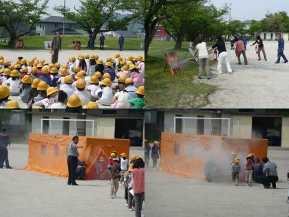 避難訓練 公開日 2008/04/28 更新日 2008/04/28 学校の様子 4月28日(月)に避難訓練を行いました。消防署の方にも来ていただき、消火器の使い方を説明していただきました。煙の怖さを知るために、煙道体験もしました。みんな真剣に取り組んでいました。