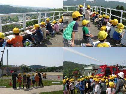 自衛隊見学 公開日 2008/05/12 更新日 2008/05/12 学校の様子 3年生は、5月7日(水)に玉川小学校の西側にある航空自衛隊に行きました。目的は、高座山山頂の展望台から校区の様子を見るためです。展望台からの眺めはすばらしく、南には庄内川が、東には玉野台や毎日通っている玉川小学校が見えました。見学後には、消防車の放水訓練を体験させてもらいました。
